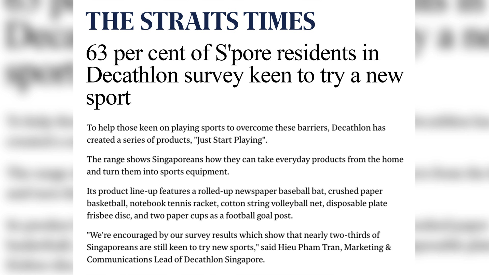 During the Phase 2 heightened alert measures in 2021, about 70% of Singaporeans felt like they have put sporting activities on hold. In response to these findings and staying true to its mission of making sports more accessible for all, Decathlon has created a series of products to show Singaporeans how easy it is to ‘Just Start Playing’.”